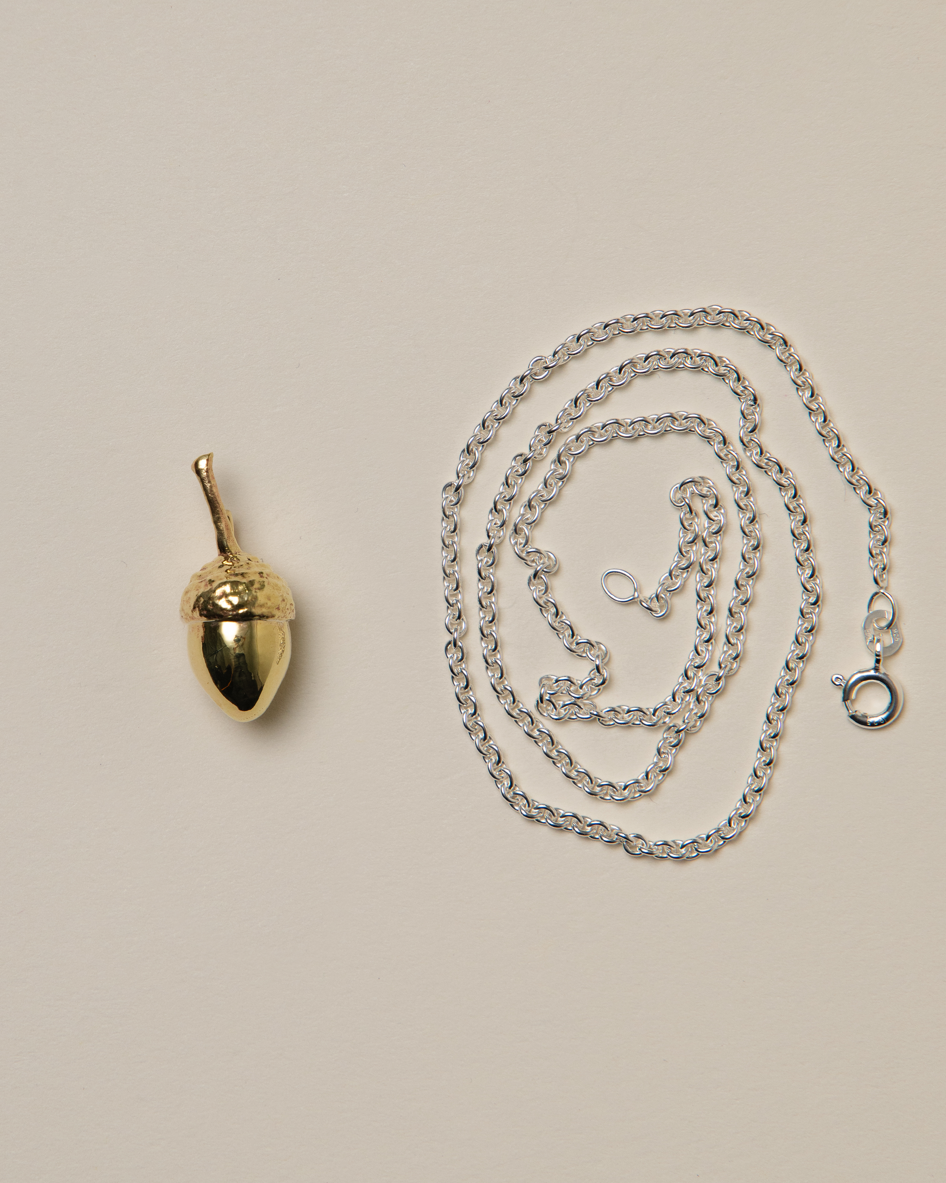 Pair the acorn with our chestnut shell pendant. Available in silver, bronze, and brass.