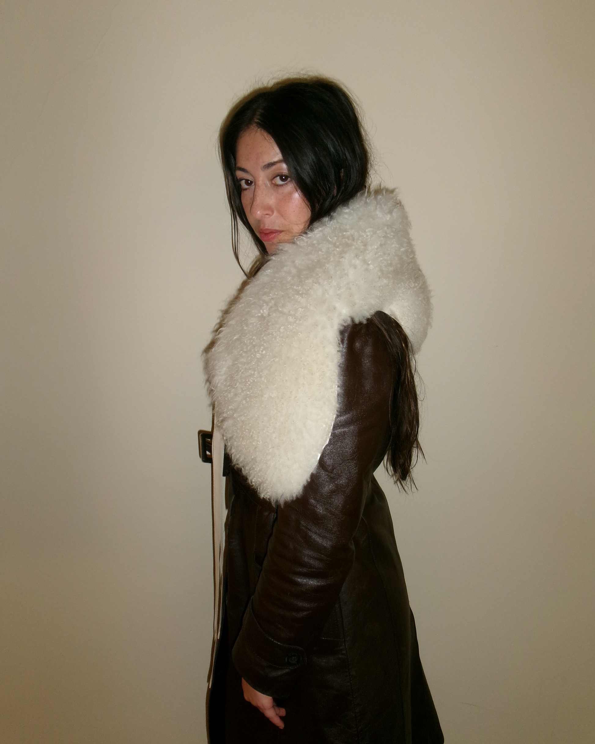 Handmade sheepskin collar designed to be worn over a coat, or loosely over your shoulders on a midsummer night. Each piece has a soft sheepskin lining that rests gently against the neck, and cotton ties that can be left loose or tied into a bow. Made to stay with you for a lifetime.