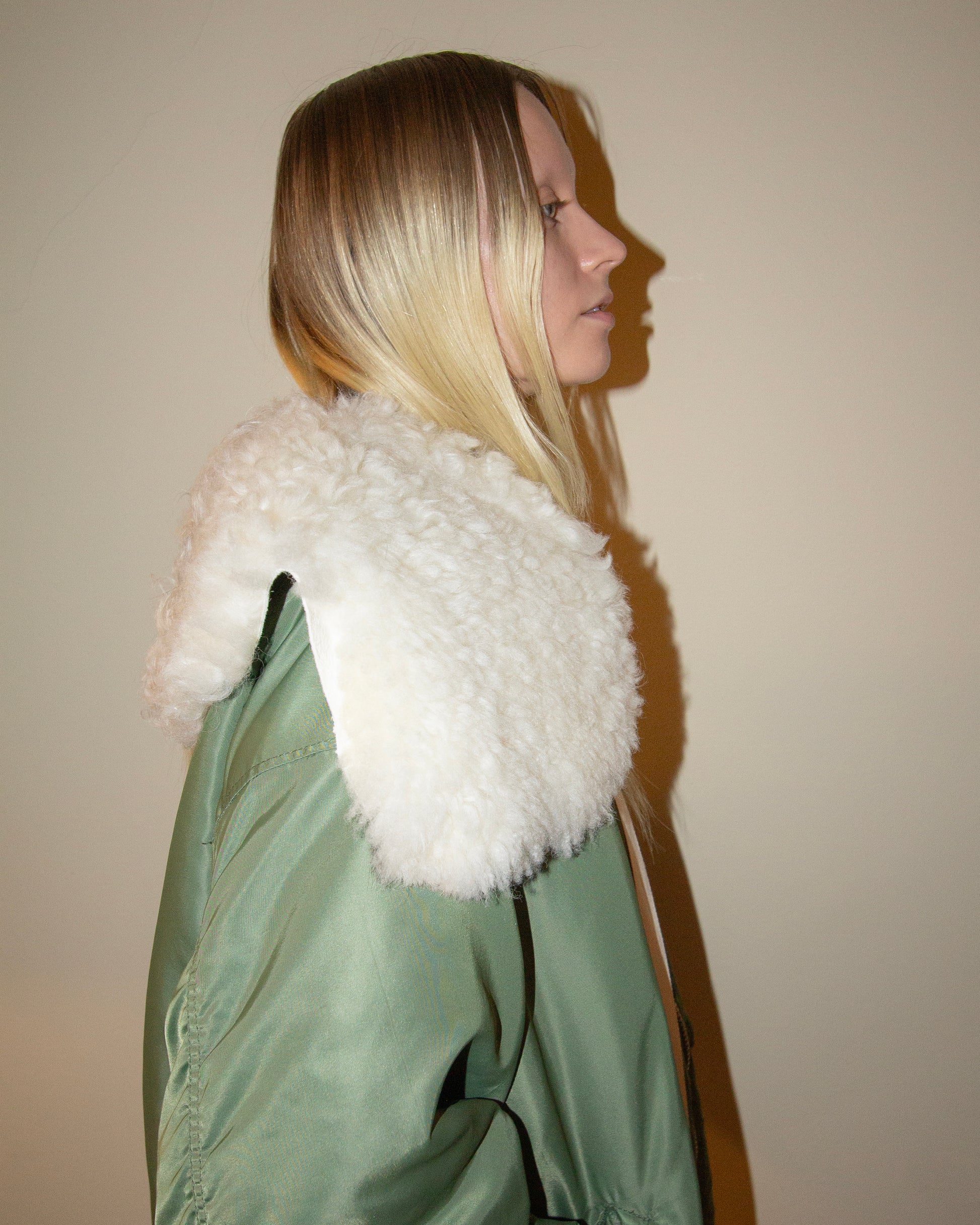 Handmade sheepskin collar designed to be worn over a coat, or loosely over your shoulders on a midsummer night. Each piece has a soft sheepskin lining that rests gently against the neck, and cotton ties that can be left loose or tied into a bow. Made to stay with you for a lifetime.