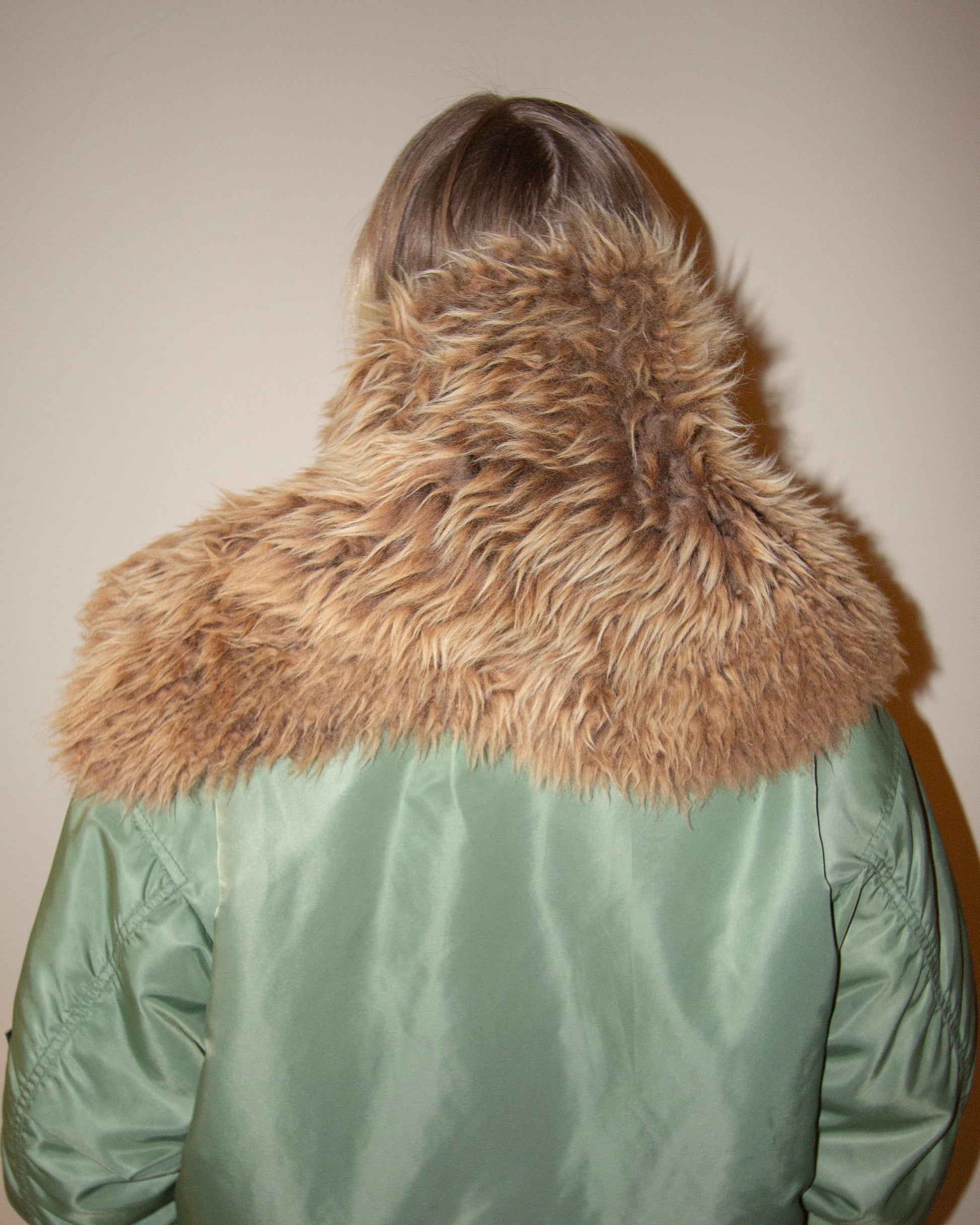 Handmade sheepskin collar designed to be worn over a coat, or loosely over your shoulders on a midsummer night. Each piece has a soft sheepskin lining that rests gently against the neck, and cotton ties that can be left loose or tied into a bow. Made to stay with you for a lifetime.